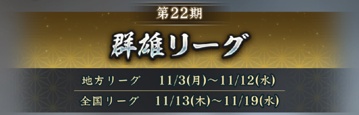 | 全国リーグ | 11月13日(木) 4:00 〜 11月20日(木) 3:59 |