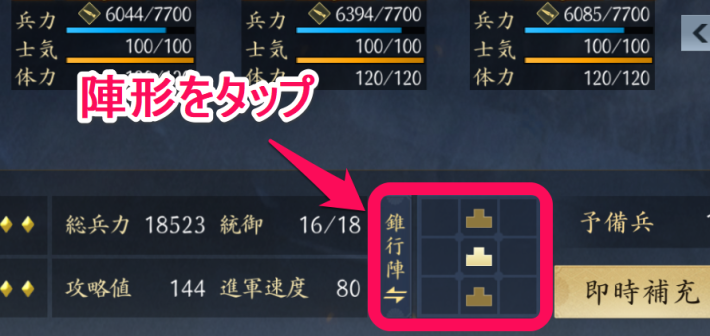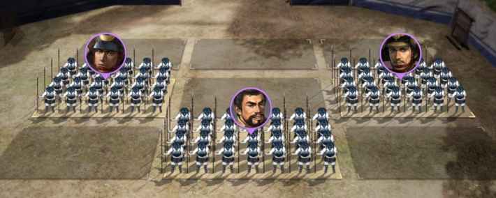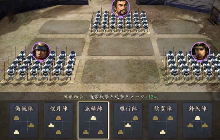 陣形を設定する際、部将の位置が配置によって大きく変わっているように見えますが、この配置が武将の狙われやすさといった点で影響を与えることはありません。