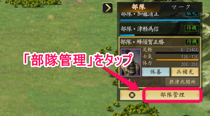 陣形の設定は部隊編制画面から行うことができます。待機中の部隊しか陣形を変更できない点に注意が必要です。