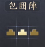 |  包囲陣 | 【効果】 部隊内の各武将の攻略値+20 【解放条件】 ・天守がLv.4に到達する |