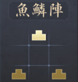 |  魚鱗陣 | 【効果】 部隊の通常攻撃・追撃戦法で与えるダメージ+20% 【解放条件】 ・天守がLv.6に到達する ・方円陣強化がLv.1に到達する |