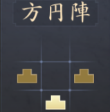|  方円陣 | 【効果】 部隊が自律戦法で受けるダメージ-20% 【解放条件】 ・天守がLv.5に到達する ・包囲陣強化がLv.1に到達する |