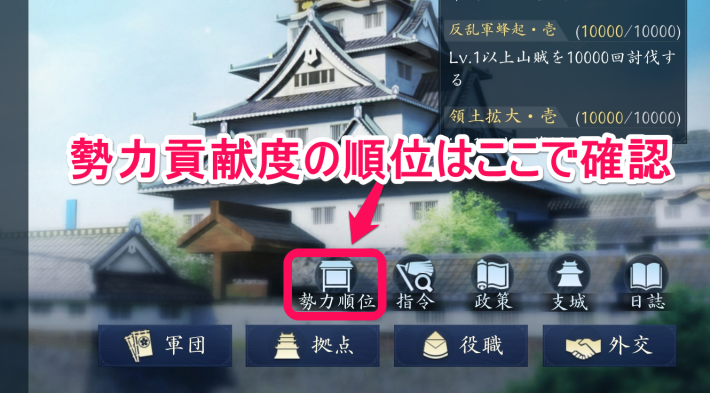 貢献度は自勢力にとってプラスになる行動を取る事で上昇します。勢力の状況によって取れる行動は限られますが、基本的には積極的に敵部隊を攻撃したり攻城戦に参加するといった行動が重要となります。