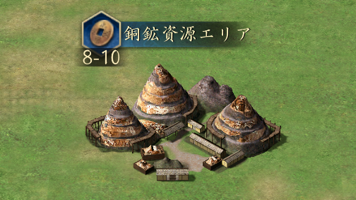 資源地のひとつである「銅鉱資源エリア」を占拠すると銅銭の徴収量が増加します。増加量は資源地のレベルに応じて変化します。