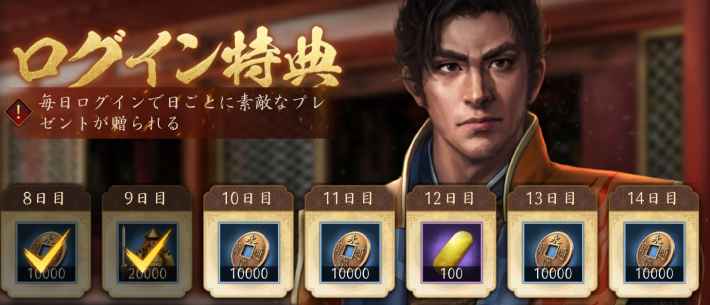 ログイン特典でも銅銭を受け取れます。毎日受け取れるわけではないという点には注意が必要です。