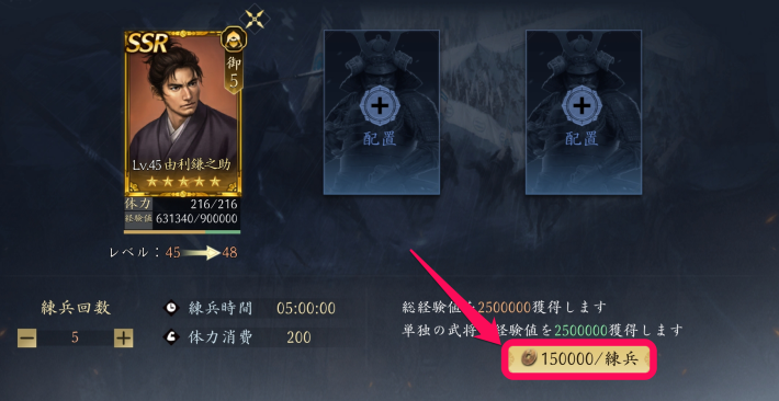 ▼練兵 | 【おすすめ度】★★★★★ ・どんな武将でも固定の経験値を稼げる |