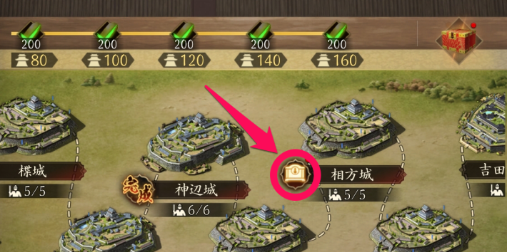 商人町は野外マップに配置された探索地の一種です。商人町にいる山賊を倒してもう一度タップすることで解放され、1時間ごとの徴収量が150増加します。