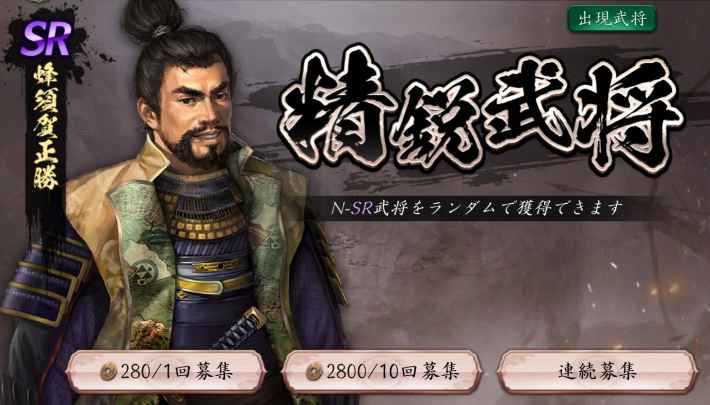 銅銭の使い道として最も重要なのは、1回につき280銅銭で引ける精鋭武将ガチャです。SSR武将こそ出現しませんが、戦法ポイント稼ぎや研究に使えるため大量に引きたいガチャとなっています。