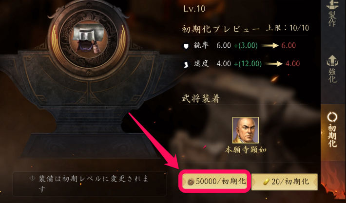装備レベルは50000銅銭を消費して初期化することもできます。この時、砂金は90%の返還となるため注意が必要です。
