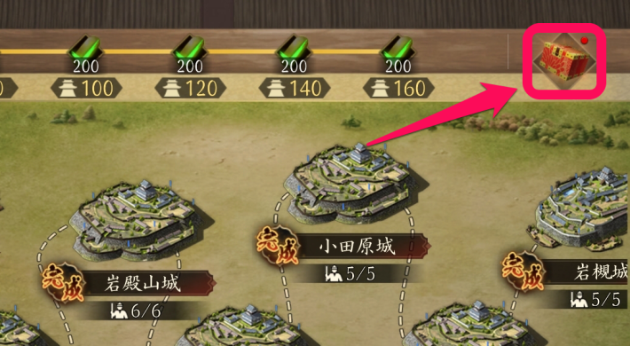 統治画面右上の宝箱アイコンから、毎日1回だけ予備兵と銅銭を受け取れます。予備兵が溢れないタイミングで受け取るのがおすすめです。