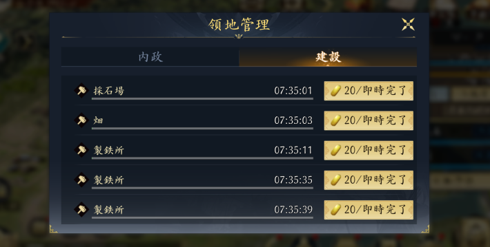 隊列とは、建築や改築を行う際に必要となります。同時並行で3つ以上の建築や改築を行いたい場合に銅銭で隊列を一時的に増やすことが可能です。
