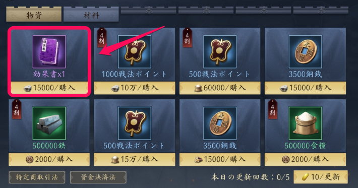 効果書は市場で購入可能です。また、季節市といったイベントではまとめて購入することもできるため、再抽選を一気に回したい場合はイベントの報酬を確認しましょう。