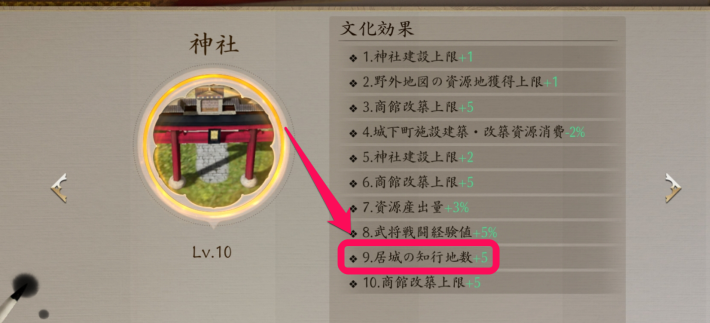 シーズン2以降の文化では、居城(シーズン開始時の本城)の知行地を文化レベルを上げることで獲得できます。こちらの効果で占拠可能になる知行地はレベルが5である点には注意が必要です。