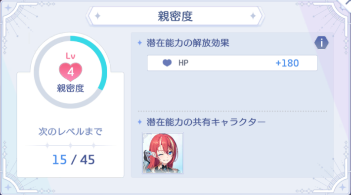 キャラの親密度を上げると、潜在能力が解放されステータスが上昇します。親密度は、王国での挨拶やプレゼントで上げることができるため、よく使用するキャラは積極的に親密度を上げましょう。