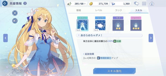 メインスキルとリンクスキルは、レベル4まで強化することで追加効果が付与されます。スキルがより強力になるため、追加効果も意識して強化するスキルを選びましょう。