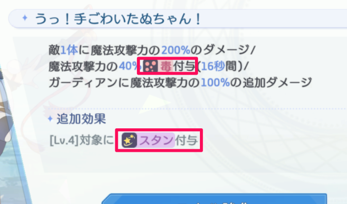 デバフや状態異常のほか、自身にバフを行えるキャラが多いのも特徴です。バフの内容やタイミングはキャラによって異なるため、編成前に確認しておきましょう。