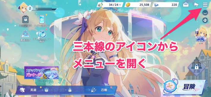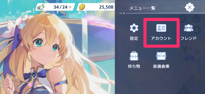 メニューを開いてアカウント連携を選び、好きな方法でデータを紐づけましょう。