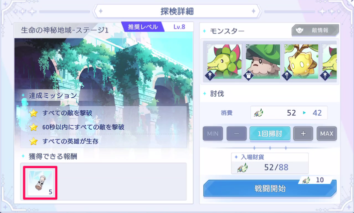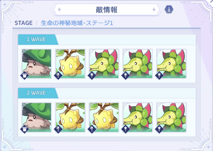 生命の神秘地域では、複数の敵が3WAVEにわたって出現します。戦闘時間も長くなりやすいため、自身のHPを回復できる前衛や味方のHPを回復できるクレリックが重要となります。