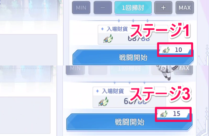 遺跡探査では、ステージが進むほど挑戦に必要なAPとクリア時の報酬量が増加します。後半のステージほど、1APあたりの報酬効率に優れるため、クリア出来る範囲で高難易度のステージをクリアするのがおすすめです。