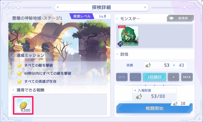 豊穣の神秘地域では、ゴールドを獲得できます。キャラの強化、商店でのアイテム購入、勇者の力の強化など、さまざまな場面で大量に必要になるため、日頃から意識してゴールドを集めておくことが重要です。