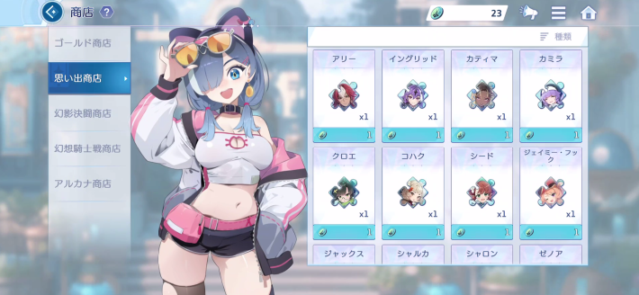 | Tips! | 思い出商店は、時間経過でラインナップが更新されることはありません。 |