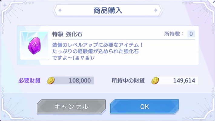 ゴールド商店では、強化石を購入するのがおすすめです。強化石は装備のレベルアップに大量に必要であり、初級強化石以外は基本的に商店で購入するしか入手手段がありません。手持ちのゴールドと相談してこまめに購入しておきましょう。