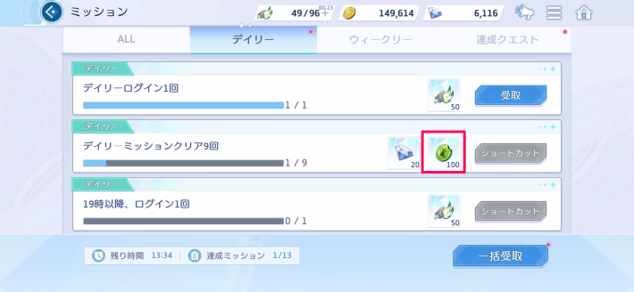 アルカナコインは、主にミッションで入手することができます。また、創始者レベルと保有経験値が最大の状態でAPを消費することでも入手でき、毎週最大で12,000枚獲得可能です。