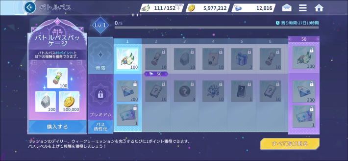 バトルパスは、お得なので課金できる場合は購入するのがおすすめです。プレミアム報酬によりさまざまな育成素材やバトルパスに応じた豪華な報酬を獲得することができます。