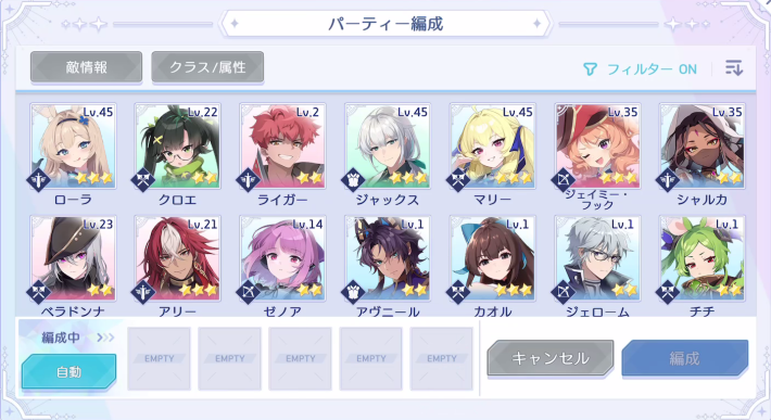 敵の弱点を突くことはできませんが、青属性のキャラを編成することもおすすめです。緑属性のキャラは数が少ないため、青属性のキャラが育っている場合はそちらを編成することも考慮しましょう。