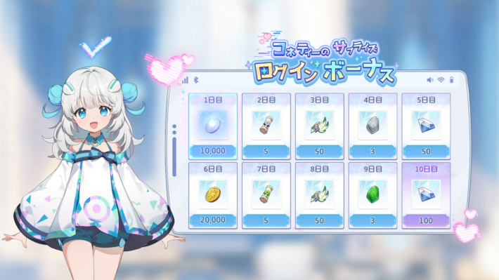 ログインボーナスでは、毎日ログインすることで報酬がもらえます。午前0時になると再び受け取れるようになるため、忘れずにログインしましょう。