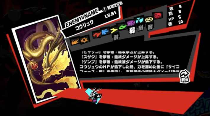 | 特徴 | ・コウリュウはHPが少なくなると発動準備をする ・発動準備の次のターンに超特大全体ダメージ ・四神を倒すと対応したバフを獲得 ・コウリュウは無限に四神を召喚し続ける |