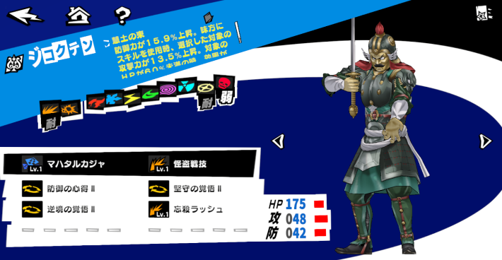 ジコクテン | ・味方の攻撃力を上昇させるサポーター ・マハタルカジャを初期から覚えている ・物理属性に耐性を持つ ・スキルで全体に物理ダメージを与える |