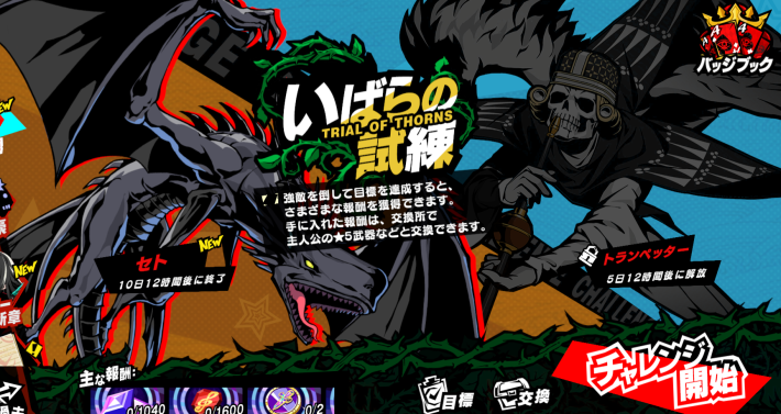 試練チャレンジは、ベルベットルームの試練をクリアしていくことで、キャラや武器を受け取れるイベントです。