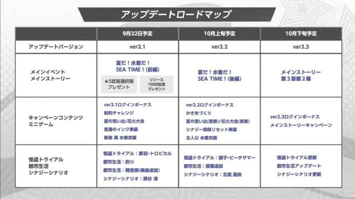 今後開催される予定のイベントは、ver.2.3まで公開されています。イベントはもちろん、ストーリーの追加が予定されているため、要チェックです。