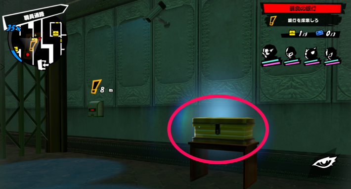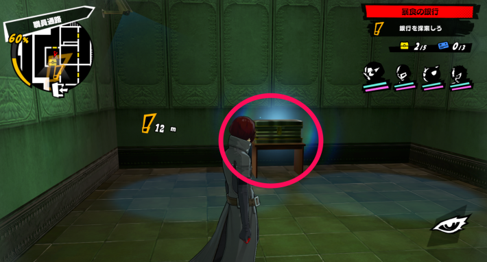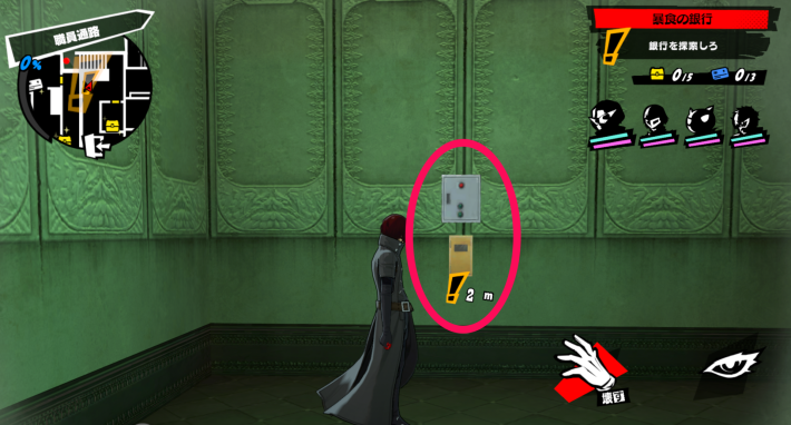ステージにある監視カメラは、近くにある電源を破壊することで無力化できます。見つかっても警戒度が上がるだけとなっていますが、壊すと宝箱などを安全に探せます。