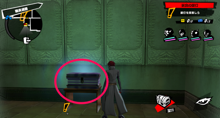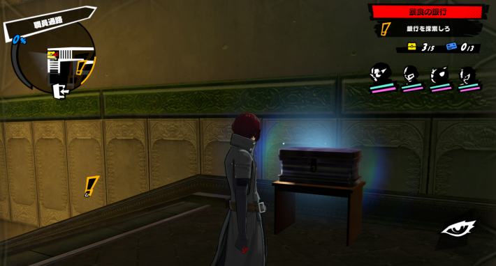 これまでのステージ同様、特殊な宝箱を調べると3-4はクリアになります。探索終了の確認が出るので、宝箱やキャッシュカードを取り逃がした方は引き返しましょう。
