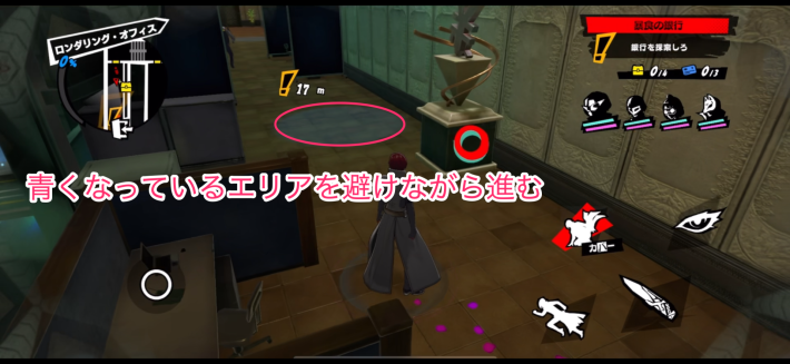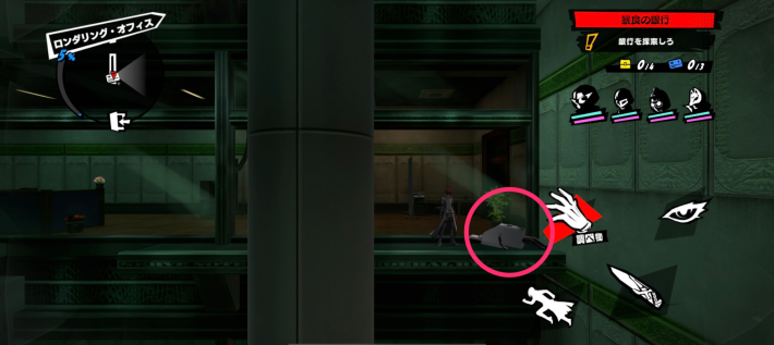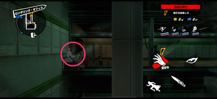範囲内にいると警戒度が上がるインターバルカメラに気を付けながら先に進みましょう。進んだ先にある扉の奥でシャドウと戦闘になります。