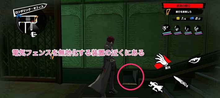 ①②はダクトを通って下に降りることで回収できます。ダクトは電気フェンスを無効化する装置の近くにあります。