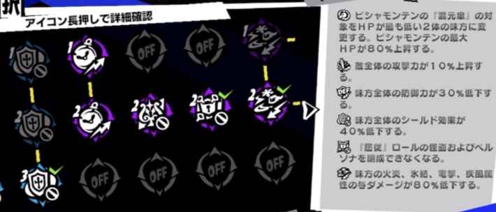 味方のステータスデバフのバトル効果は難易度2までがおすすめです。ただ、回復量のデバフ効果は難易度2以上にすると回復が追いつかなくなるので1を推奨します。