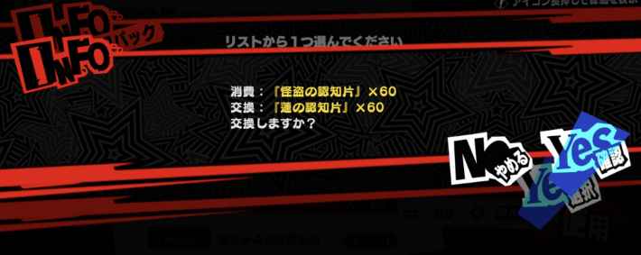 怪盗の認知片とは、星5キャラクターの凸ができるアイテムです。認知片1つごとに対象となるキャラクターの認知片と交換可能で、60個で対象キャラを凸できます。日本版では、対象キャラクターは徐々に追加されると発表されています。