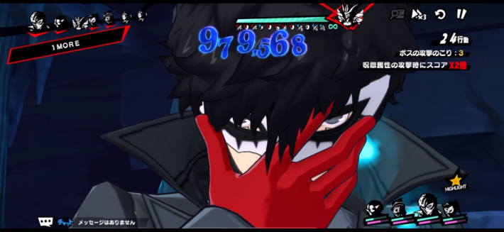 ジョーカーの2回行動でハイライトの頻度を上げて、『増幅の印』のバフを維持しましょう。増幅の印は3つまで累積し、それぞれ個別に管理されているので、増幅の印のバフが切れないようにハイライトを使うことが大切です。