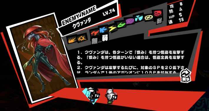 カタヤマパレスの上層に登場するクヴァンダの攻略では、「恨み」を持つ味方に強攻撃をしてくるので、被ダメージを抑える対策をしましょう。また、高火力の攻撃で一気に敵のHPを減らすのがおすすめです。