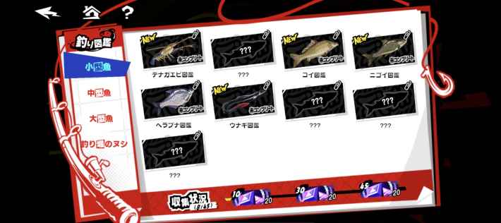 獲物を釣ると図鑑が埋まっていきます。釣った獲物の収集状況に応じて自在結晶を最大で360個獲得可能です。