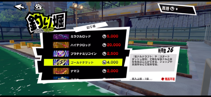 獲物を釣ったら「釣果の報告」をすることで「フィッシングポイント」を獲得できます。フィッシングポイントは釣り堀ショップでプラチナミリコインやゴールドチケットなどと交換可能です。