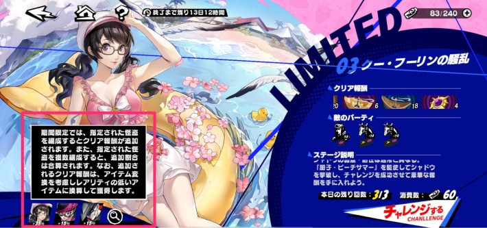 ペルソナ5X(P5X)の夏だ!水着だ!SEA TIME!の怪盗トライアル(水着朋子)攻略まとめです。ペルソナ5X夏だ!水着だ!SEA TIME!イベント怪盗トライアル(水着朋子)進め方や報酬、攻略のコツも掲載。P5X怪盗トライアル(水着朋子)の攻略にどうぞ。