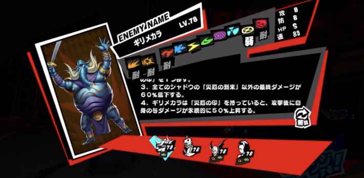 ペルソナ5X(P5X)のギリメカラ(発電所1階)の攻略とおすすめパーティ編成です。ペルソナ5X片山パレス発電所1階ギリメカラの弱点や行動、おすすめのキャラやペルソナ、倒し方のコツを掲載。ギリメカラの倒し方にお役立て下さい。