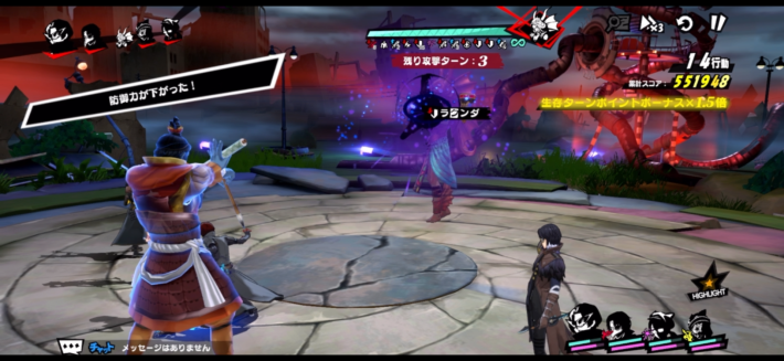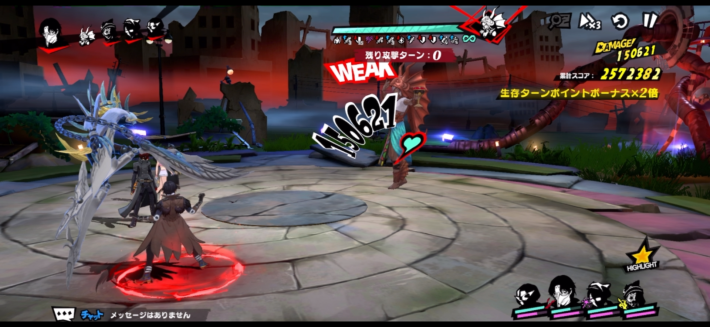 残りの攻撃可能ターンが0になり、味方の攻撃が一巡したらチャレンジは終了です。