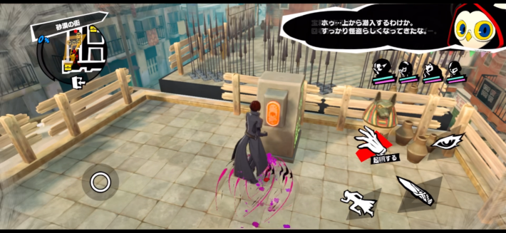 装置を起動して針山を下げましょう。針山が下がると奥の建物に移動できるようになります。