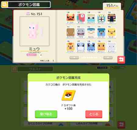 151種類じゃなくて150種類集めた段階で「ポケモン図鑑完成」がクリアできるのはちょっとおかしい