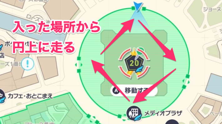 ▶ワイルドゾーン20のポケモンの出現場所中心に近づきすぎないように内側をまわる